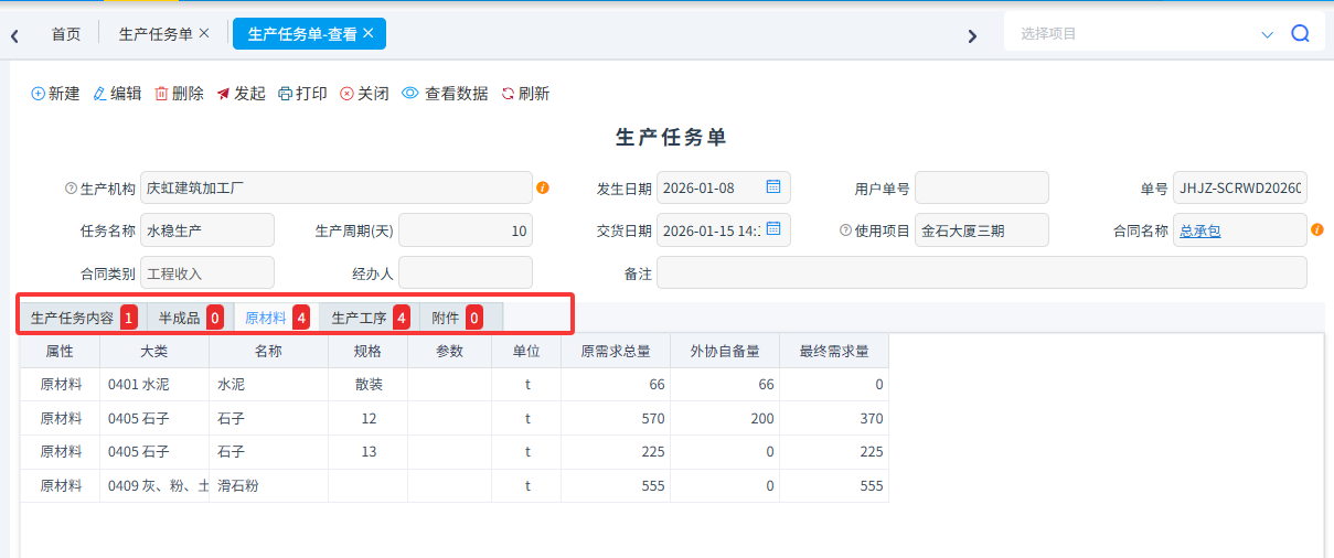 需求購買原材料,在材料管理-材料采購訂貨單中可以直接調(diào)取生產(chǎn)任務(wù)單中材料數(shù)量。