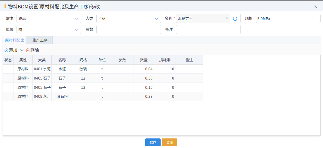 主要設(shè)置成品和半成品的配比和工序