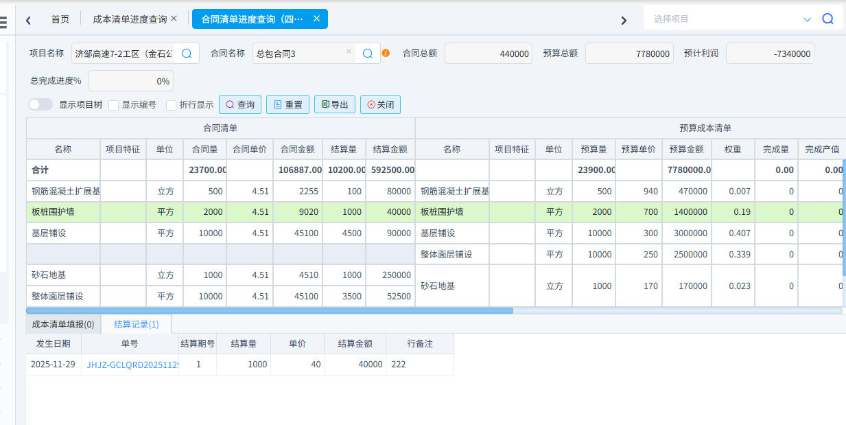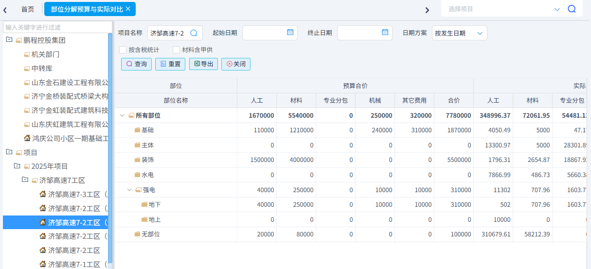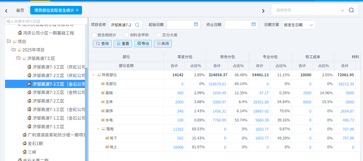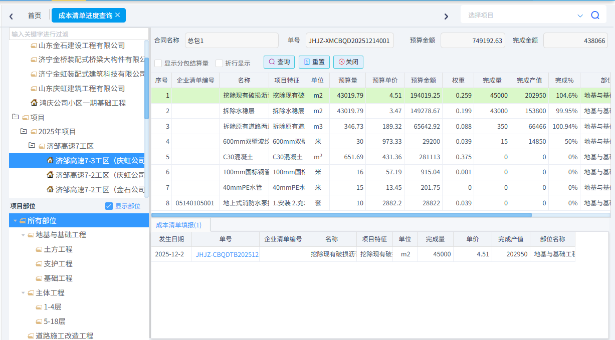 可以根據需求統計成本清單進度、合同清單進度(四算對比)、項目部位實際發生以及部位分解預算與實際發生。