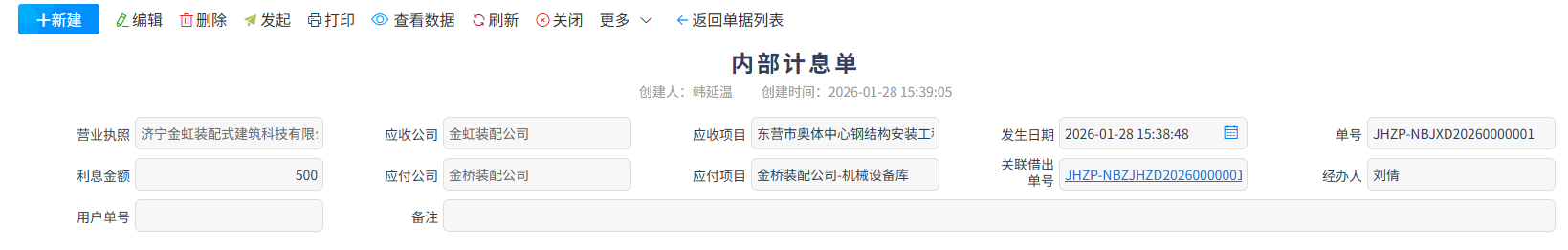 內部計息單是企業內部資金管理的核心核算單據,核心用于對公司內部賬戶、部門或項目間的資金拆借、占用、調撥等往來場景,按照約定利率精準核算資金占用利息,清晰記錄計息基數、利率、計息周期及應付 / 應收利息金額。